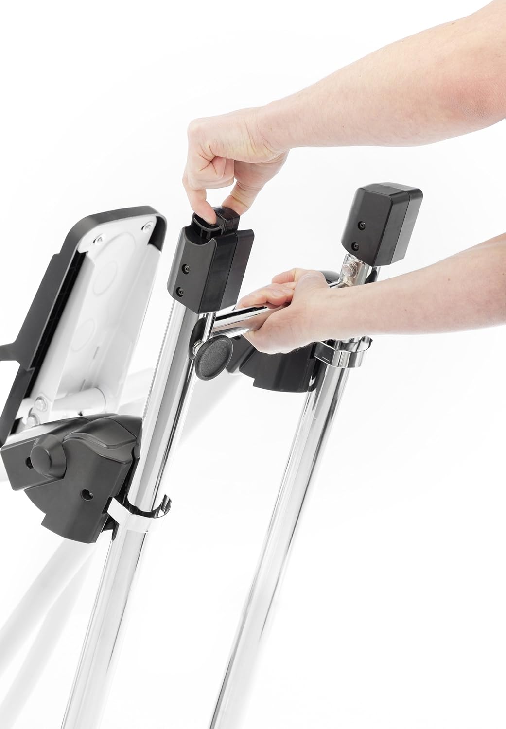 This image illustrates the adjustment mechanism on the Kettler Skylon 1.1 crosstrainer, showing how to secure or release a component, likely for assembly or folding the unit for storage.