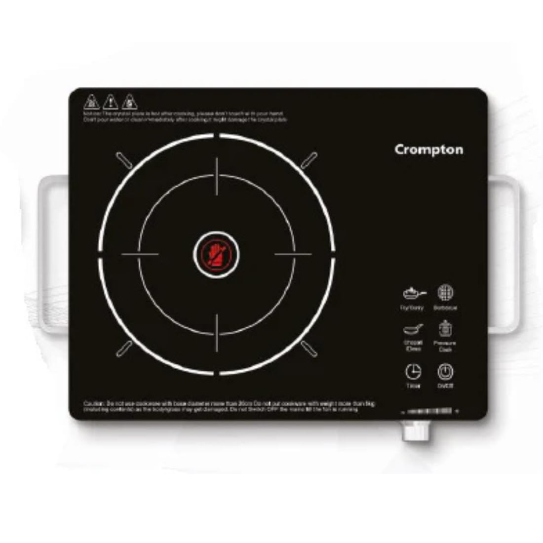 The Crompton Infraserve Infrared Cooktop is a 2000-watt appliance designed for efficient and versatile cooking. It features a durable crystal glass surface and intuitive touch panel controls.